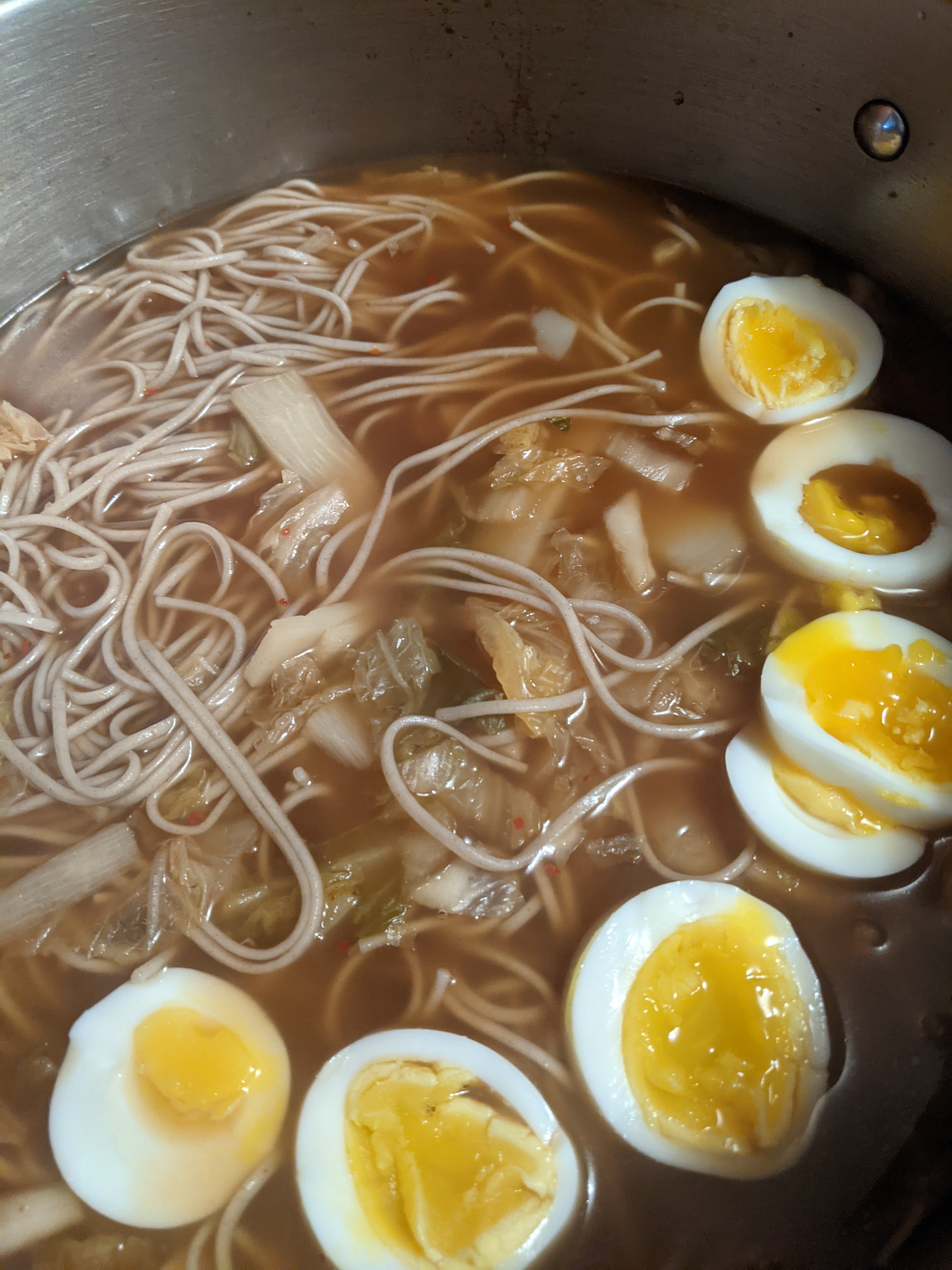 Again, I emphasize that this is to taste. This was more on the bland side to stick as closely as I could to my husband’s low fodmap diet. It isn’t perfect because it does have garlic and onion in both the kimchi and the ramen broth. But I did what I could to limit it.
