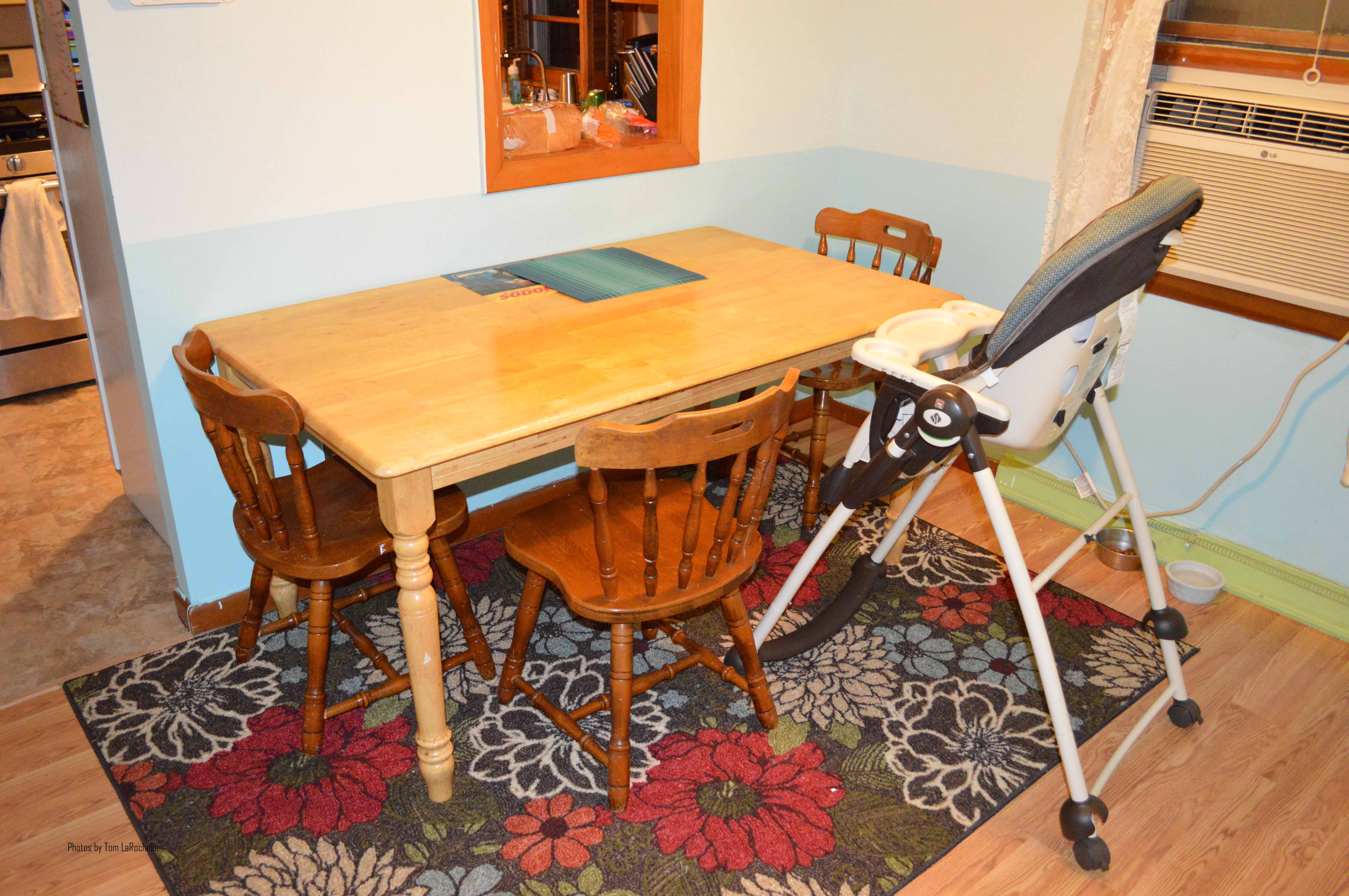 The dining room and kitchen were the first things on our “to-do” list. This was important, because our house had cracked asbestos tiles that we knew were there and could pose a health hazard for our younger child and possibly our forever puppy Zoey. We didn’t want to paint or remove carpeting or anything else until the tile was up and the dust was out of the air.